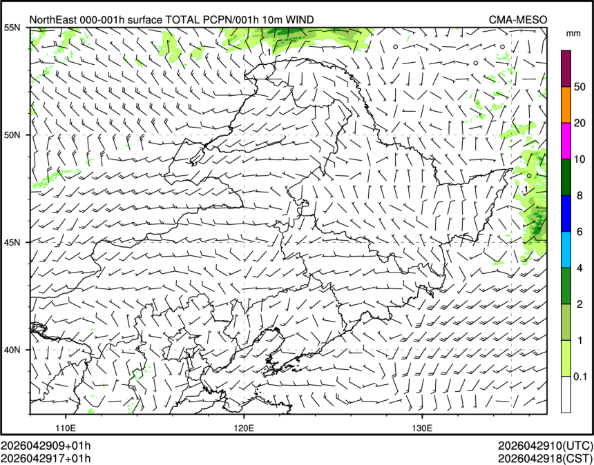 1h降水+10m风场