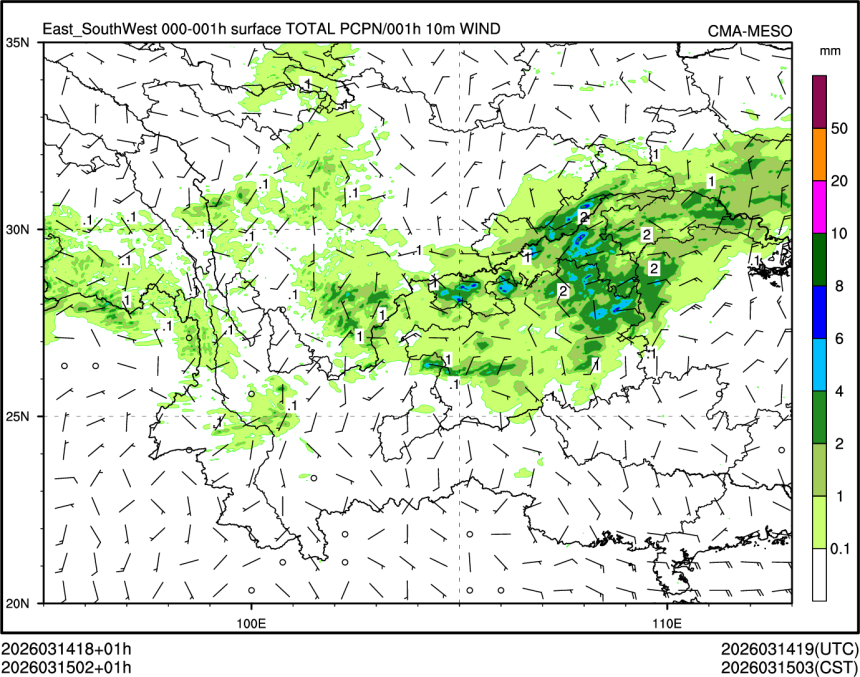 1h降水+10m风场