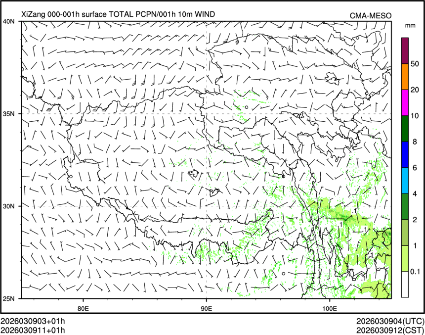 1h降水+10m风场