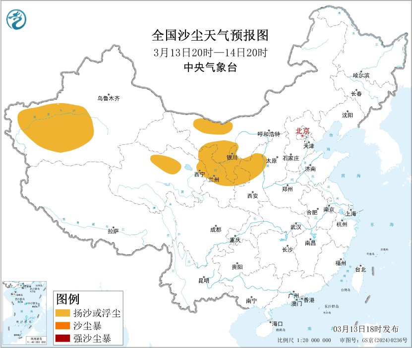 中央气象台3月13日18时解除沙尘暴蓝色预警: