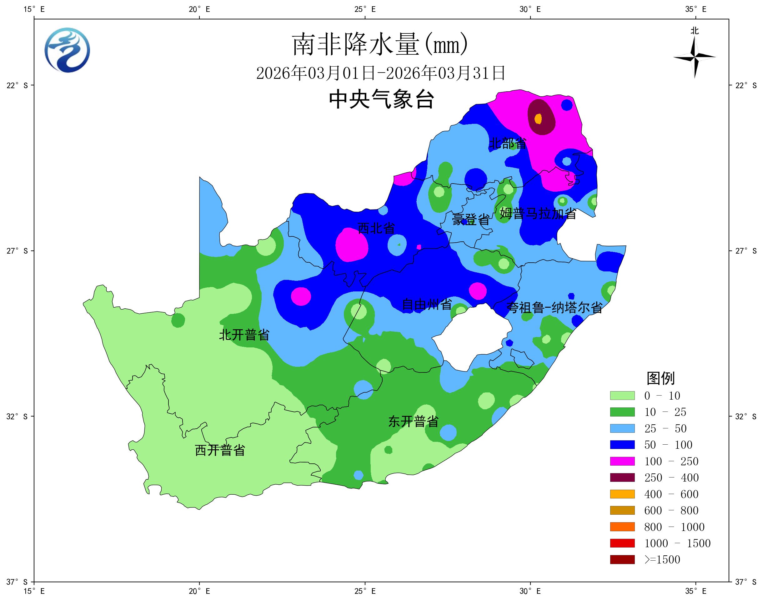 3月,南非玉米种植区大部时段多晴好天气,气温接近常年同期或偏低1~2℃(图16),自由州省、西北省、豪登省、姆普马拉加省、夸祖鲁-纳塔尔省等玉米主产区出现大范围降水,降水量为25~100毫米(图17),有效补充了农田土壤水分(图18),为玉米灌浆成熟提供了良好的水分条件,作物长势良好。