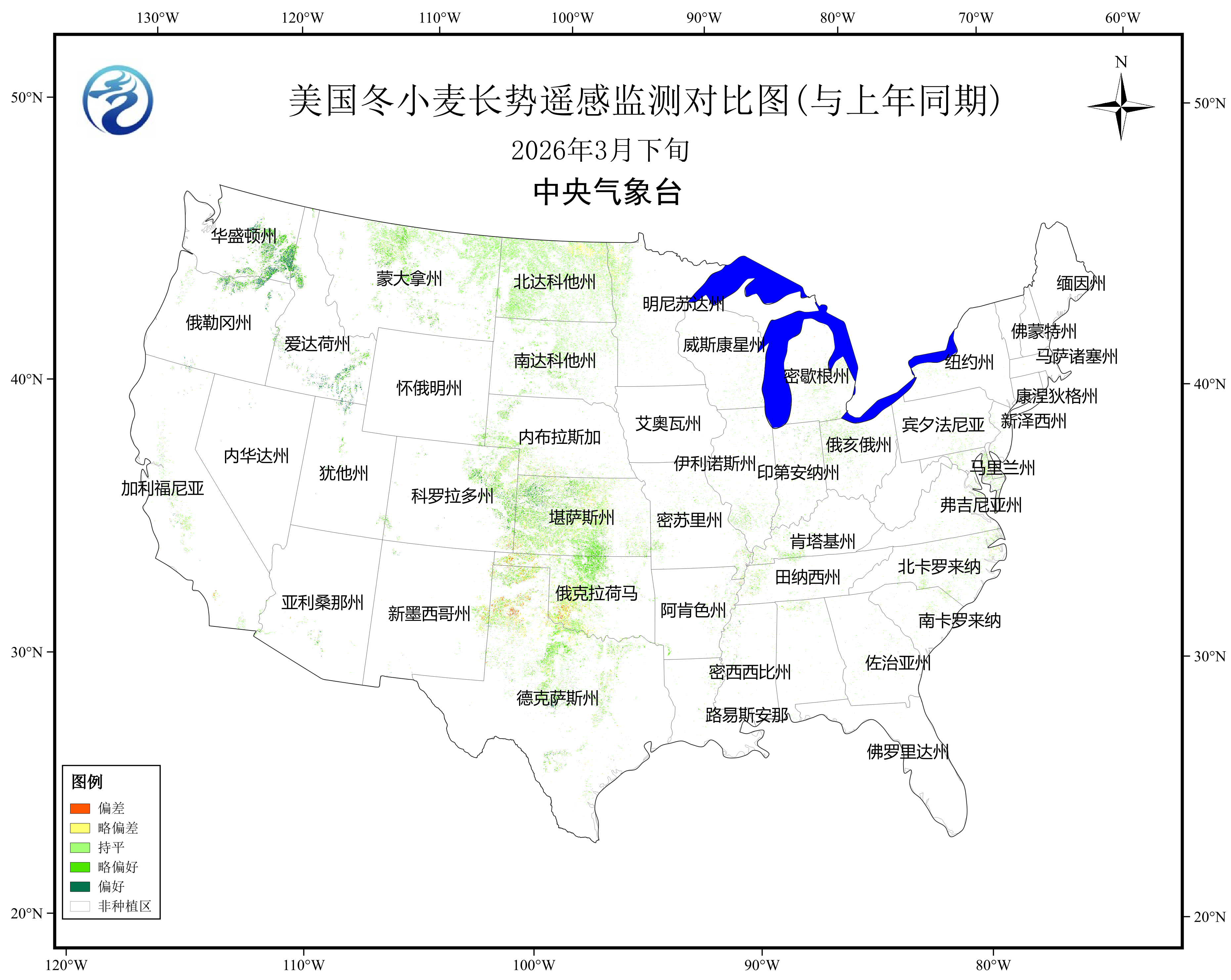 图22 2026年3月下旬美国冬小麦长势遥感监测