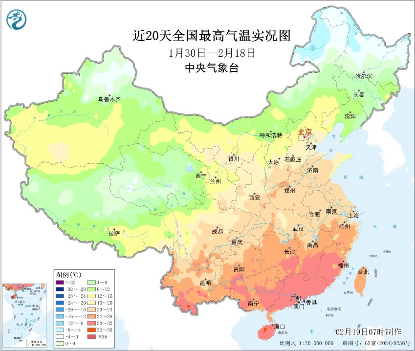 近20天全国最高气温实况图