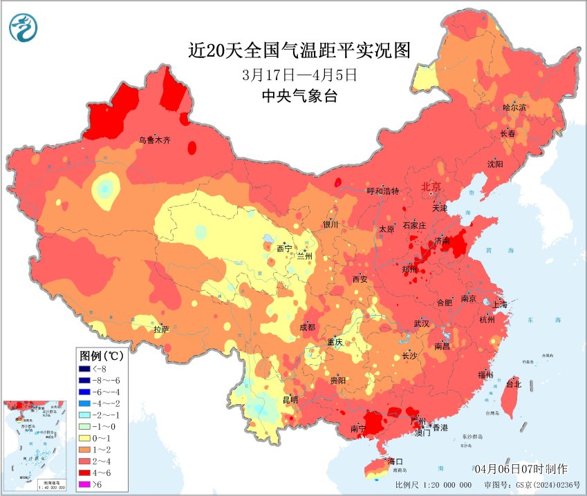 近20天全国平均气温距平图