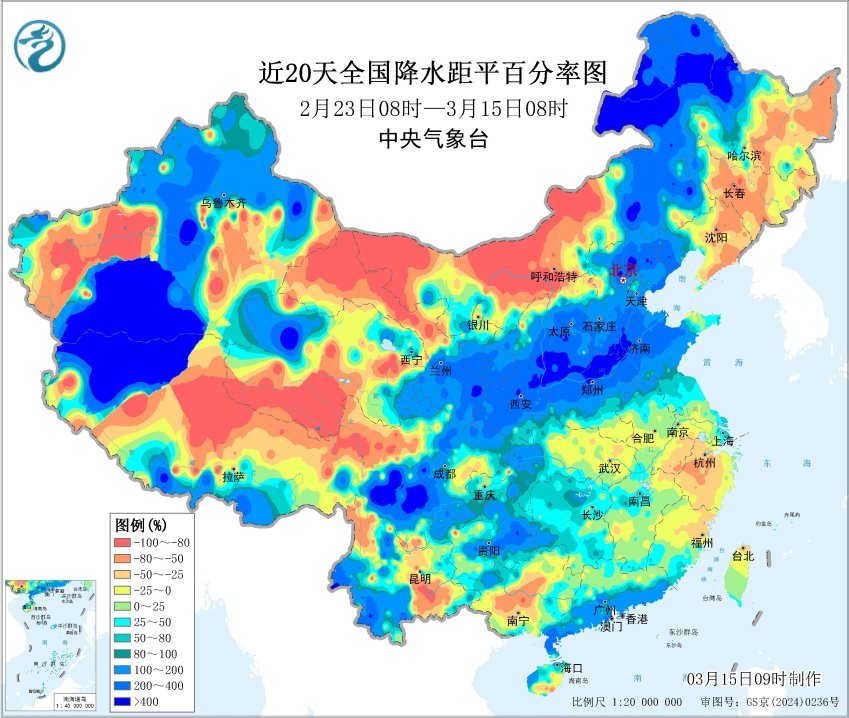 近20天降水距平百分率