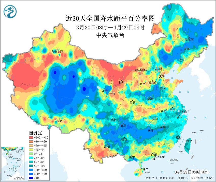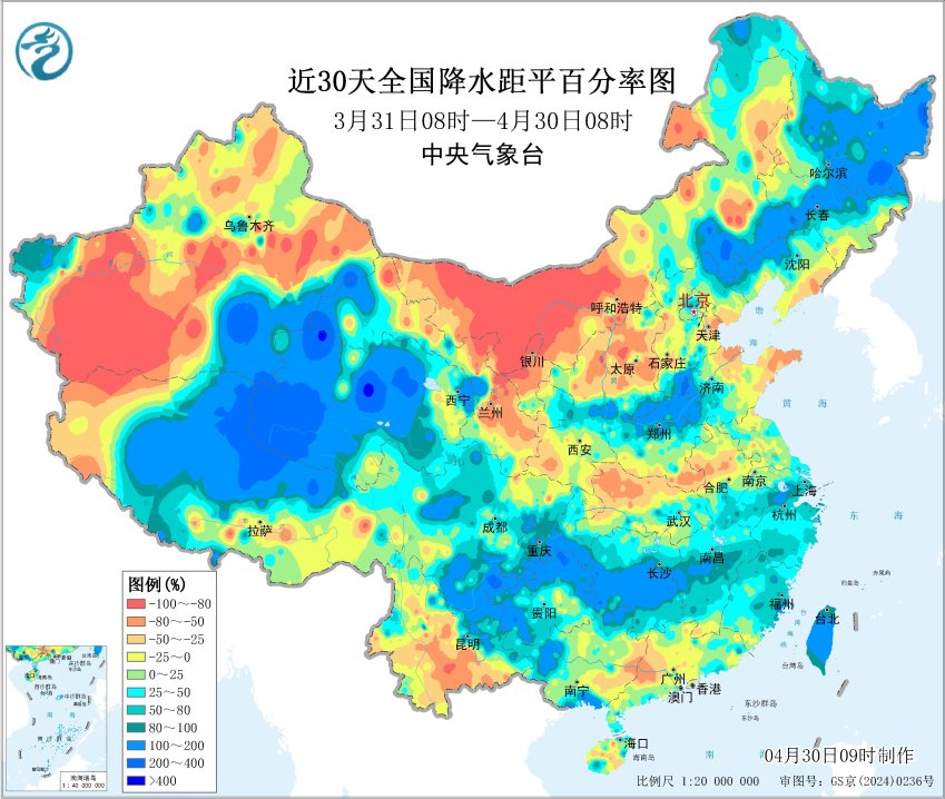 近30天降水距平百分率