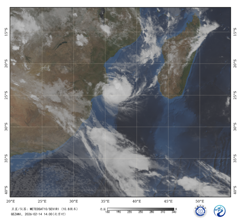图1 卫星红外监测图像(北京时间2026年2月14日14时00分)