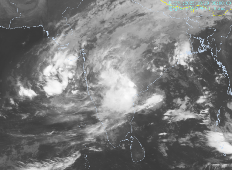 图4 卫星红外监测图像(北京时间2025年10月29日08时00分)