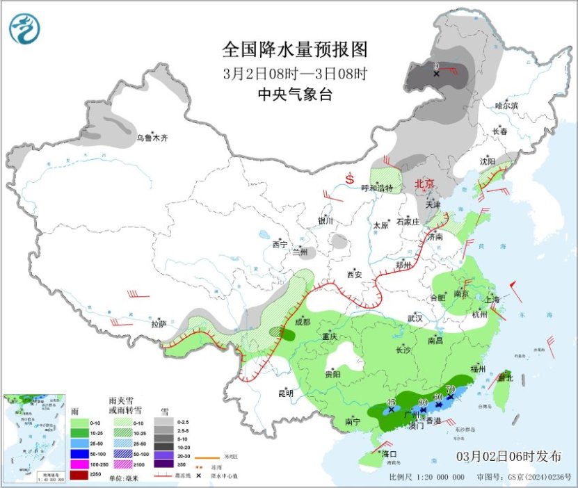 昨日,新疆北部、西北地区东部、华北南部及黄淮西北部等地部分地区出现小到中雪或雨夹雪,山西东南部、河北南部、河南北部等局地大雪或暴雪;黄淮中东部、江淮、江南中东部及广东北部等地出现中到大雨,浙江东北部沿海、江西南部、广东北部等局地暴雨。
