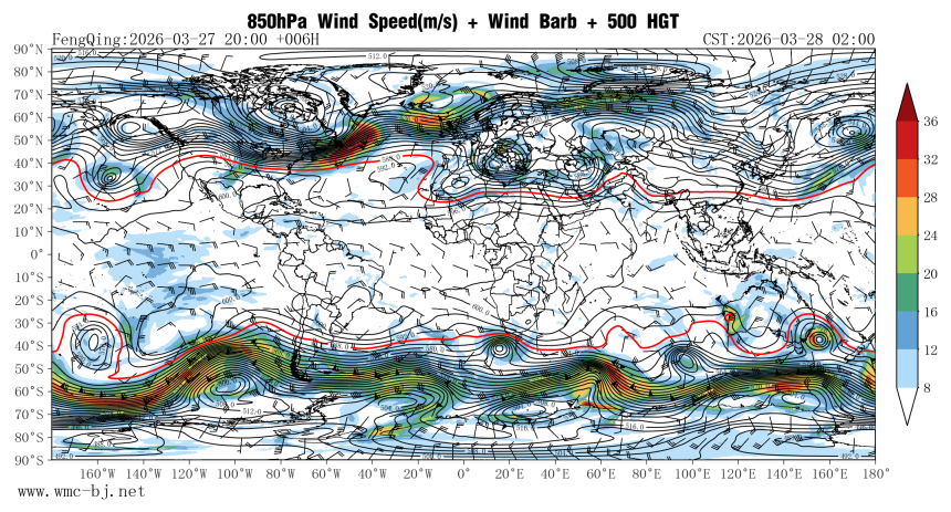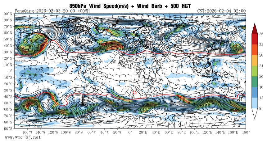 850hPa Wind Speed(m/s) + Wind Barb + 500 HGT